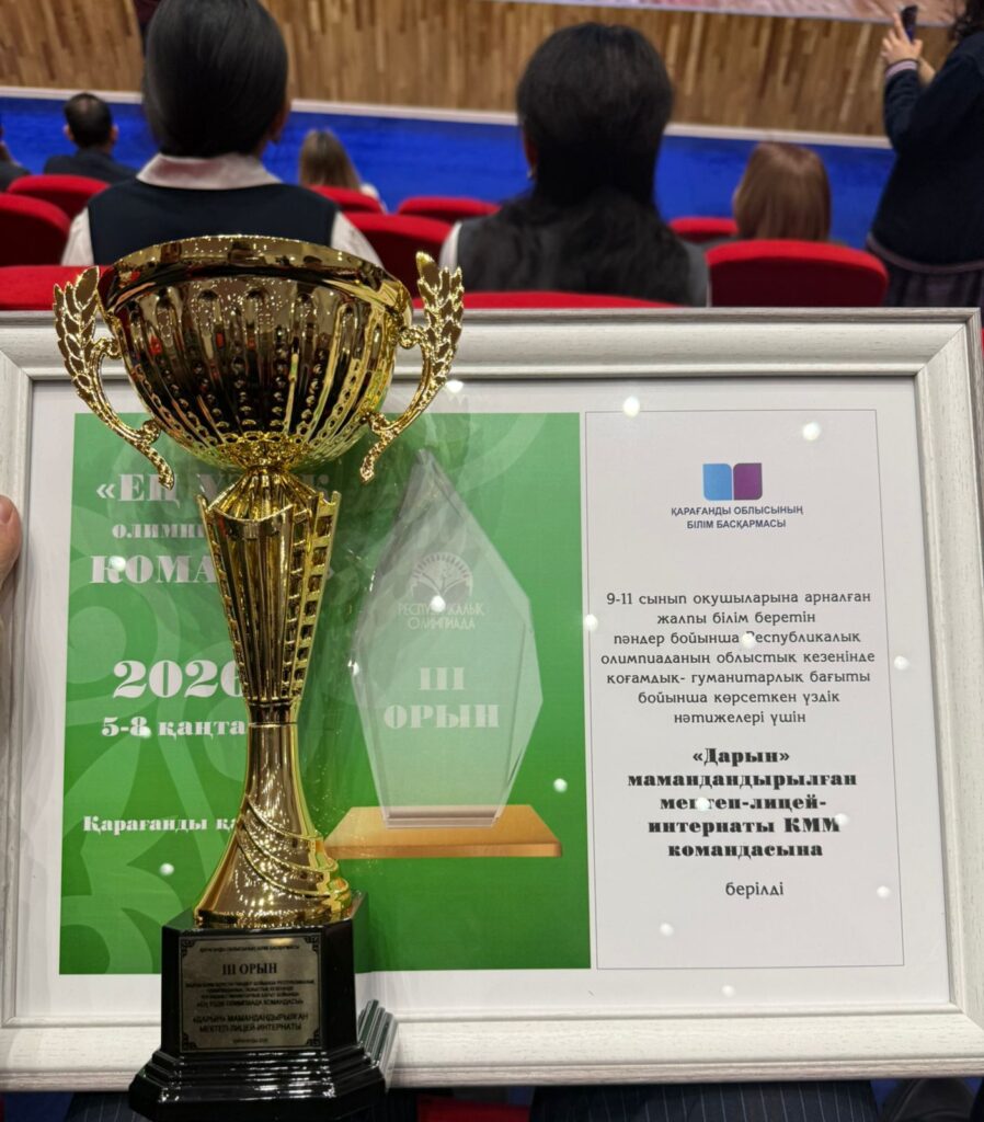 Жаратылыстану-математика циклы пәндері бойынша ХҮІІІ Президенттік олимпиаданың республикалық кезеңінде жүлделі орын алған мектебіміздің мақтаныштары 11 сынып оқушылары — Насырова Камила (ІІІ орын) , қатысушы сертификаттарына ие болған Амангелді Тілек, Муканов Алижанды ҚҰТТЫҚТАЙМЫЗ! Дайындыққа ат салысқан пән мұғалімдерімізге – Аскаров А.Н., Акашева Ж.К., Жунусов М.С.,Ермекова Г.С., Ескожина А.Ж., Сапаргалиев А.Б., Тусупова Г.С., Академик Е.А.Бөкетов атындағы Қарағанды ұлттық зерттеу университетінің профессорлық-оқытушылық құрамынан – Кадирберлина Г.М., Кудусов А.С.,Кутимов Қ.С. үлкен АЛҒЫСЫМЫЗДЫ білдіреміз!